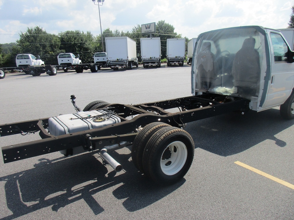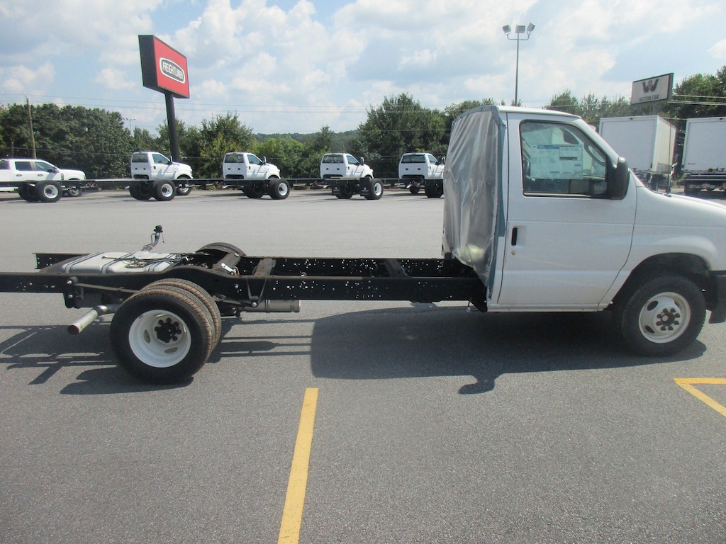 This new 2024 Ford E-450 Super Duty Commercial Cutaway Van in Oxford White with a Medium Flint Vinyl interior is built to handle the toughest commercial demands. It is powered by a premium 7.3L V8 engine paired with an electronic 6-speed automatic transmission with tow/haul mode, delivering a 14,000-pound GVWR and a 55-gallon fuel tank for maximum operating range and payload capacity. This model is equipped with the Preferred Equipment Package 782A, front air conditioning, AM/FM stereo with clock, auxiliary fuel port, dual bucket seats, trailer tow mirrors, an electronic instrument panel message center, and a heavy-duty vinyl front floor covering. Safety and performance are enhanced with the Driver Assist Technology Package and B-pillar trim kit. Designed for commercial readiness, this van is ready for immediate upfit and deployment across a wide range of demanding fleet, service, or delivery applications. Financing & Extended Warranty Available! Call Today!