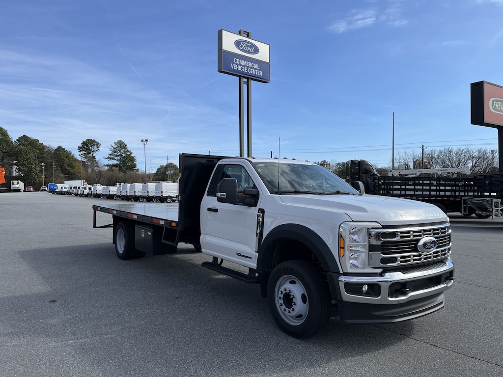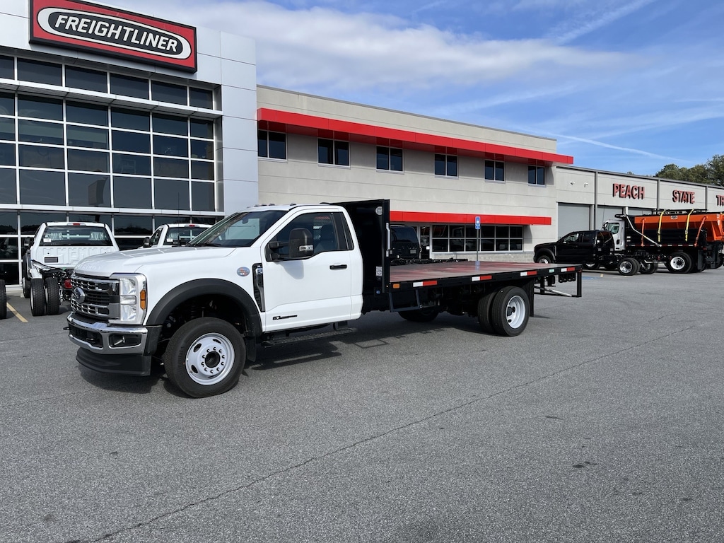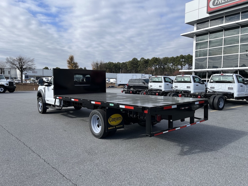 New 2025 Ford F550 Flat Bed, 6.7L Power Stroke Diesel, 19,550 GVWR, Engine Block Heater, Trailer Tow Package, Rear View Camera, 16' Conyers Truck Bodies Flat Bed, Sliding Track, Winches with Straps, 36" Tool Box.